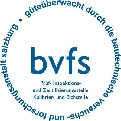 Die Bautechnische Versuchs- und Forschungsanstalt Salzburg (bvfs) ist durch das Bundesministerium (Akkreditierung Austria) als Inspektionsstelle akkreditiert. Akkreditierungsgrundlage ist die ÖNORM EN ISO/IEC 17020.