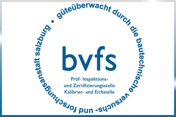The Bautechnische Versuchs- und Forschungsanstalt Salzburg (bvfs) is accredited by the Federal Ministry (Accreditation Austria) as an Inspection Body. The accreditation is based on ÖNORM EN ISO / IEC 17020.